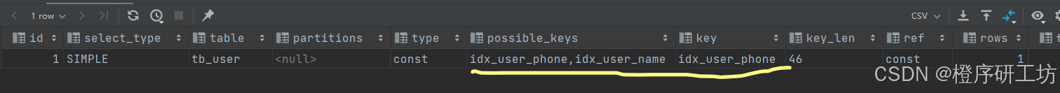 然后执行以下语句:会自动选择一个索引