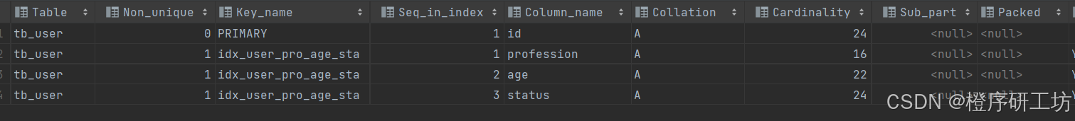 create index idx_user_pro on tb_user(profession);