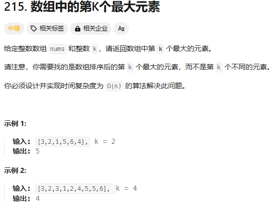 原题链接:215. 数组中的第K个最大元素 - 力扣(LeetCode)