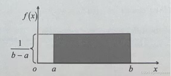 可以看出均匀分布的概率密度曲线形状是一个矩形,因此均匀分布有时又称为矩形分布。a和b是均匀分布的参数。