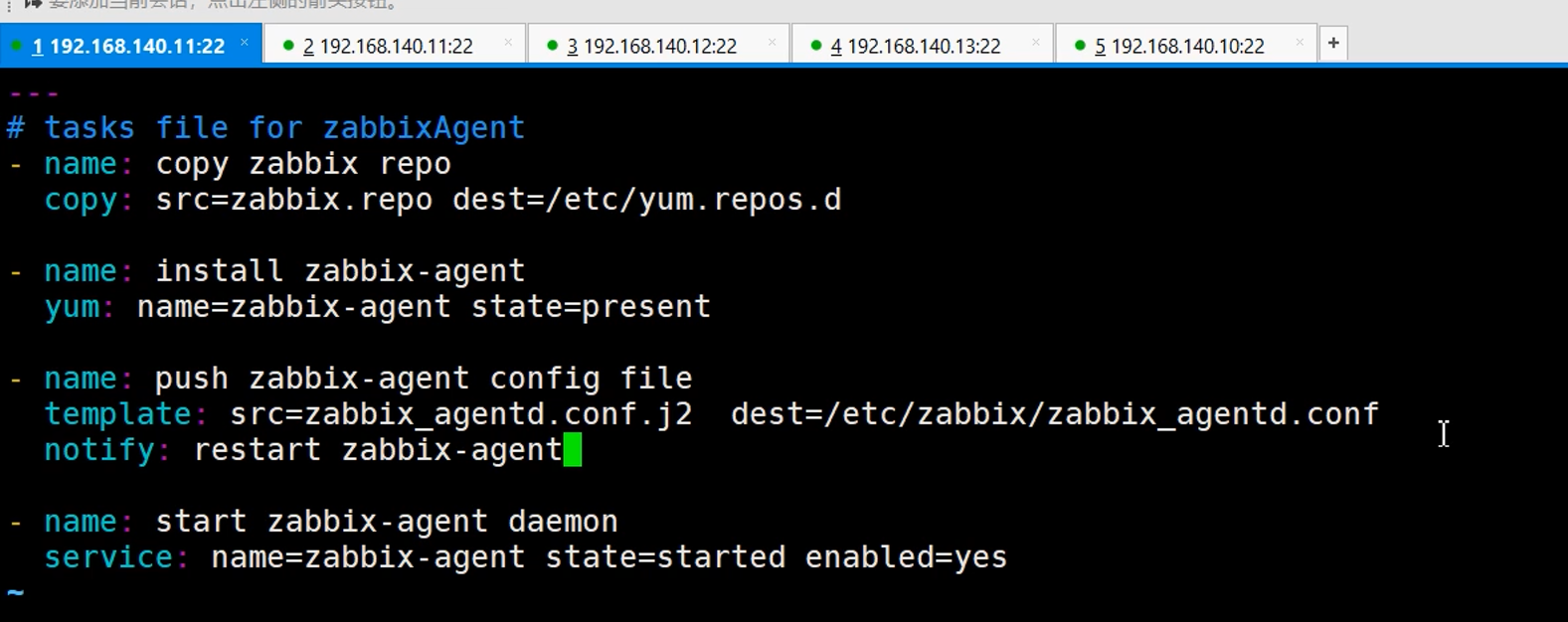 如上图所示,这是编辑对应的剧本文件,直接运行ansible-playbook /opt/playbook/installZabbixAgent.yml