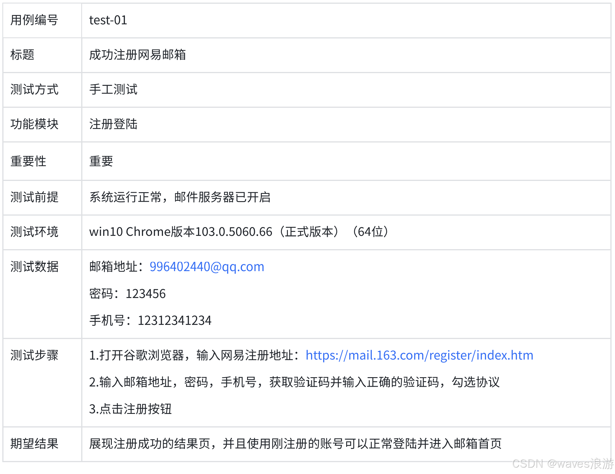 我们在编写测试用例的时候,每个用例需要给出这些要素对应的信息。