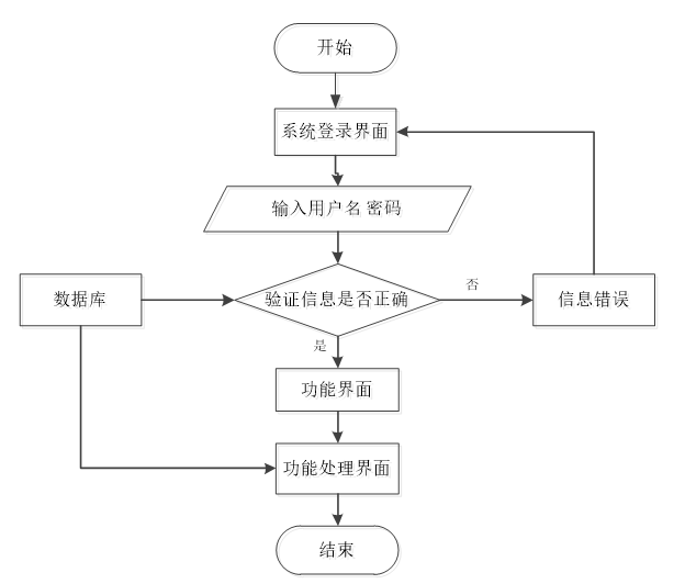 本系统的登录模块,其内部的流程见下图。主要对访问本系统的人员提供的验证信息进行逐个判断,系统面对录入错误的信息会给出提示,比如,提示账号不对,或提示密码不匹配等提示信息。总之,在登录页面填写的所有信息都符合要求,访问者就登录成功了。