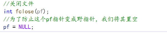 不过要注意的是,我们将这个文件关闭后,原来指向这个文件的指针就会变成了野指针,所以我们在关闭这个文件后,最好再将这个指针置为空指针NULL。