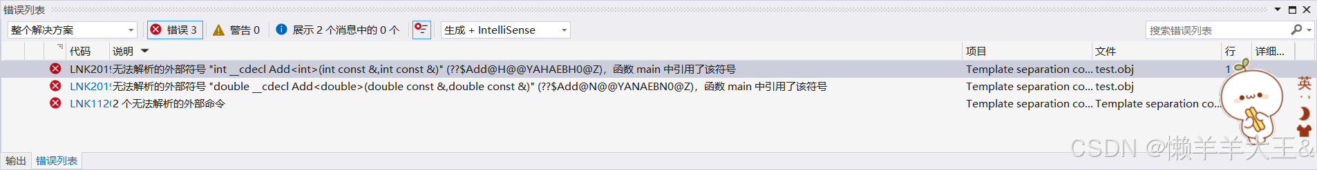 test.i中知道Add需要实例化成int和double各一份Add函数,但是他只有声明没有定义。