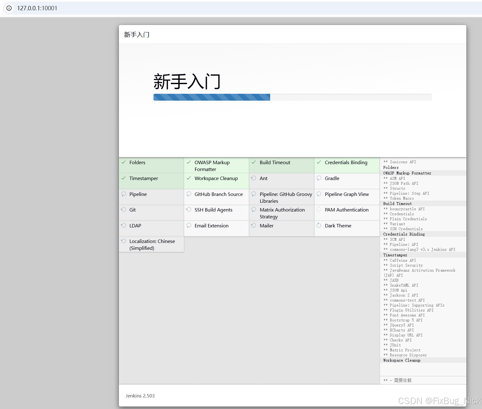 在浏览器中访问 http://localhost:10001(或者你的Docker宿主机的IP地址和端口),你应该能看到Jenkins的初始设置页面。按照指示完成安装向导。