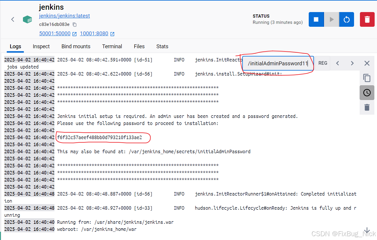 (在容器日志里面通过搜索 /var/jenkins_home/secrets/initialAdminPassword 即可)