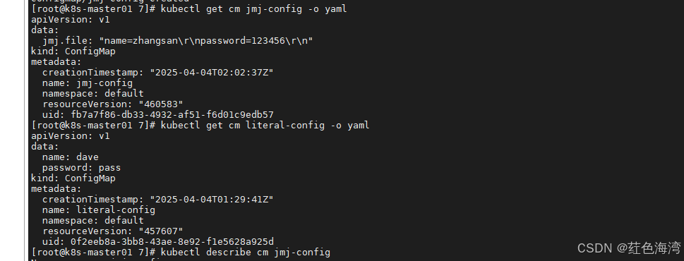 2.--from-literal 我们直接把对应需要去创建出来的key value 对象直接编写在了我们的选项中或者创建命令里 所以这种方式更适合那种key value比较简短的 比如就写一个用户名