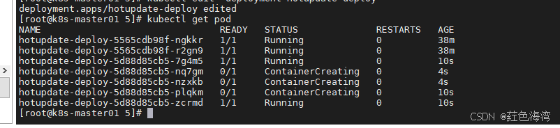 kubernetes会根据服务器的压力自己去调控注入的阶段 什么时候注入第一个 我们会有序的执行 基本会在一两分钟内完成大部分的替换 是没有任何问题的 那从这里我们可以看到这就是热更新的一种标学