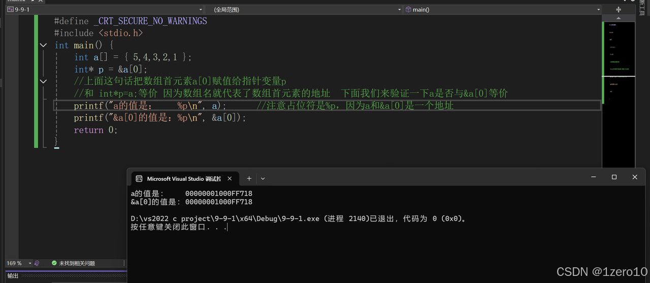 你会发现由于我们定义的数组是int类型,四个字节 你会发现正好每个元素开辟了四个字节的空间,前一个元素arr[0]的四个字节的空间和后一个arr[1]的四个字节的空间是连在一起的