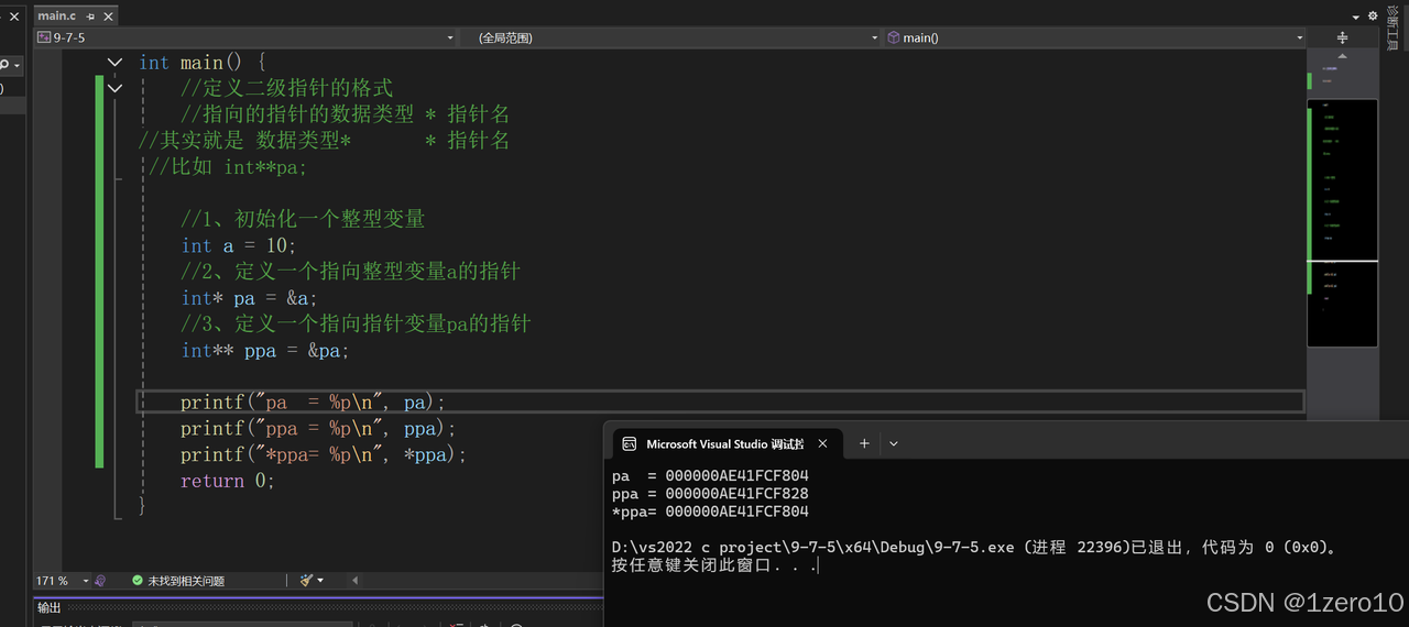 然后当你解引用时 打印printf("%d\n",*pa); 实际上是解析存储在pa里的一个数,0000008A2D4FFC38的含义,然后发现是a的地址,然后找到a的内存空间,读取a内存空间内的值