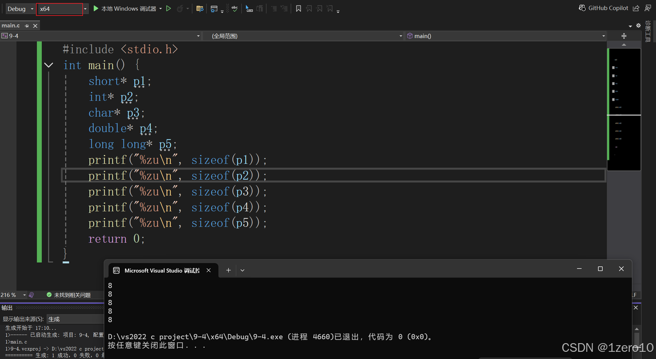 原因是在64位的系统(即x64)中 每个指针变量电脑分配8个字节,来存储指向变量的地址,也就是一个16进制数