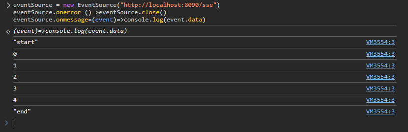 SseSampleController 类已经通过@CrossOrigin注解允许跨域访问,可以在浏览器控制台上直接执行客户端代码。