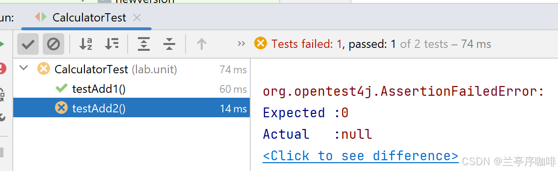 我们运行一下测试用例,UT不通过,这也是预期的。