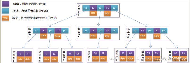 B树的非叶子节点既有数据,又有指针;而B+非叶子节点没有数据,只有叶子节点有数据;
