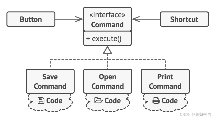 - 命令(Command)接口通常仅声明一个执行命令的方法。