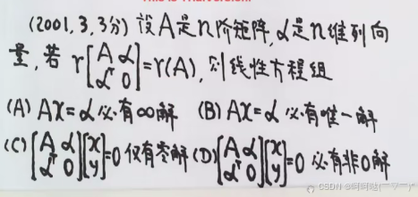 线性代数:分块矩阵,秩,齐次线性,非齐次线性的解相关经典例题