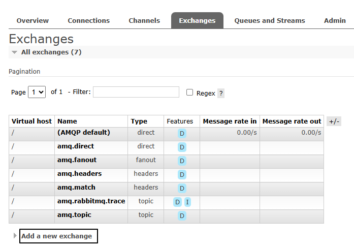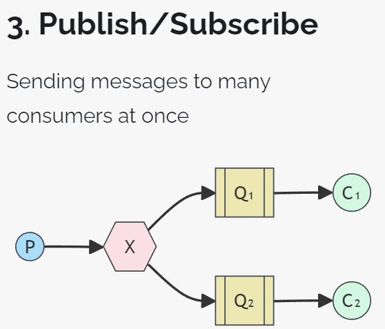 而在订阅模型中,多了一个exchange角色,而且过程略有变化: