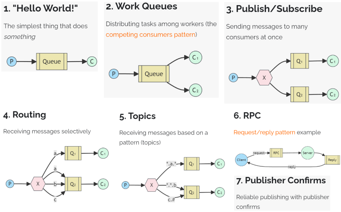 官网对应模式介绍:https://www.rabbitmq.com/getstarted.html