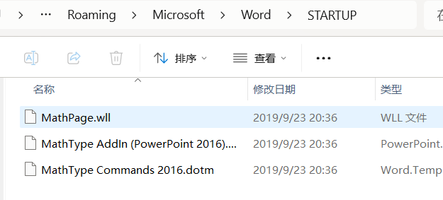 Word 的启动文件夹中可能有多个 MathType 加载项之类的