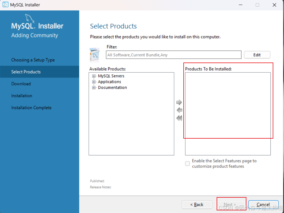 ③ 因为我们选择安装 MySQL 所有应用,快捷选择安装所有应用的方式,点击 next 按钮返回上一步操作后,点击选择 full之后,再次点击next。
