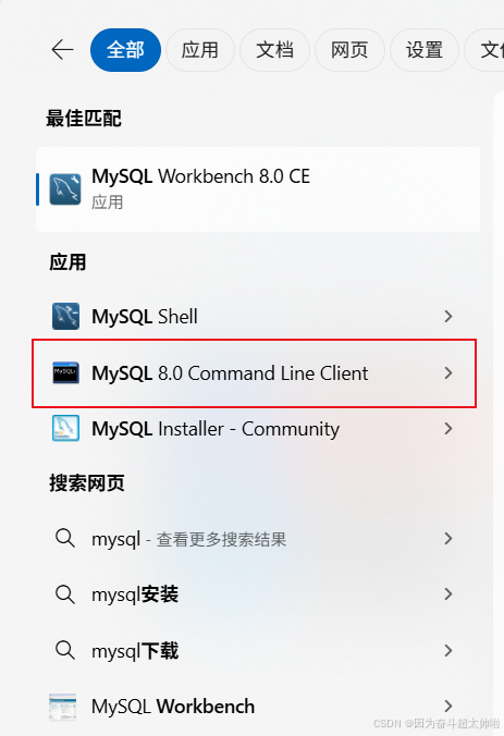 注意 : 上述的 mysql80 是我们在安装 MySQL 时,默认指定的 mysql 的系统服务名,不是固定的,如果未改动,默认就是mysql80 。