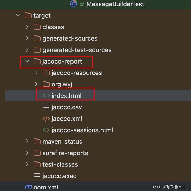- 在target目录下,可以找到jacoco生成的覆盖率文件,它是html格式的,可以在浏览器中查看