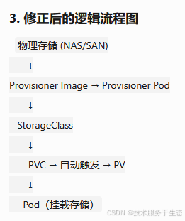 stoageclass来自于provisioner,provisioner来自于pod,pod来自于镜像。也就是provisioner的镜像。镜像里面有提供provisioner相关的代码。