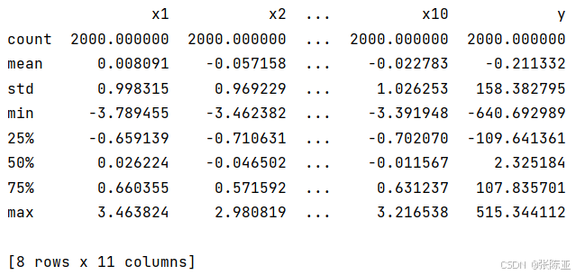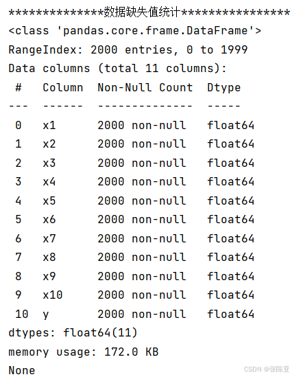 从上图可以看到,总共有11个变量,数据中无缺失值,共2000条数据。
