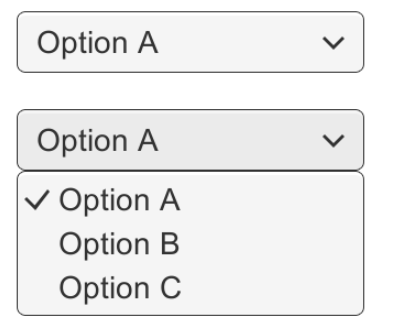 下拉列表可用于让用户从选项列表中选择单个选项。该控件显示当前选择的选项。单击后,它会打开选项列表,以便可以选择新选项。选择新选项后,列表将再次关闭,并且控件显示新的选定选项。如果用户单击控件本身或 Canvas 中的其他任何位置,则列表也会关闭。