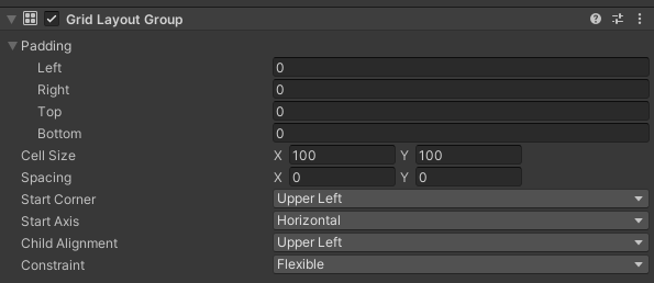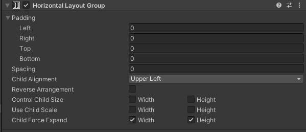 | Control Child Size 控制子项大小 | Layout Group 是否控制其子布局元素的宽度和高度。 |