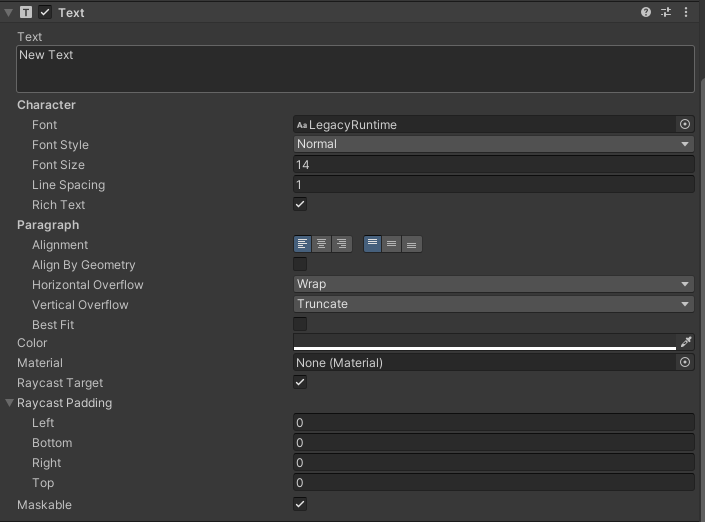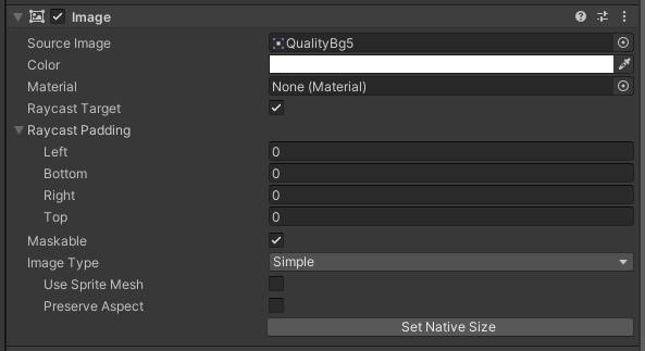 | Raycast Target | 需要和组件进行交互时使用,未用到时建议取消勾选 |