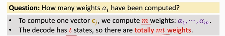 每当Decoder想要生成一个状态的时候都会看一遍Encoder的所有状态,这些权重α会告诉Deocder应该关注哪些地方。