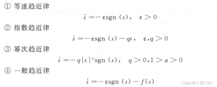 这几种趋近律都先天满足可达性条件,从而可以便于求解控制函数。