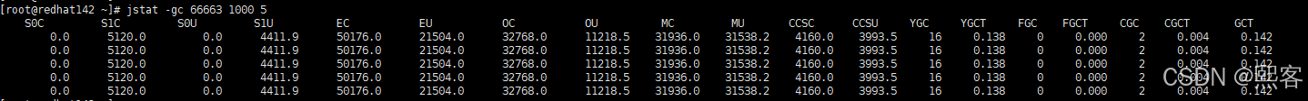 gc和-gcutil参数类似,只不过输出字段不是百分比,而是实际的值。