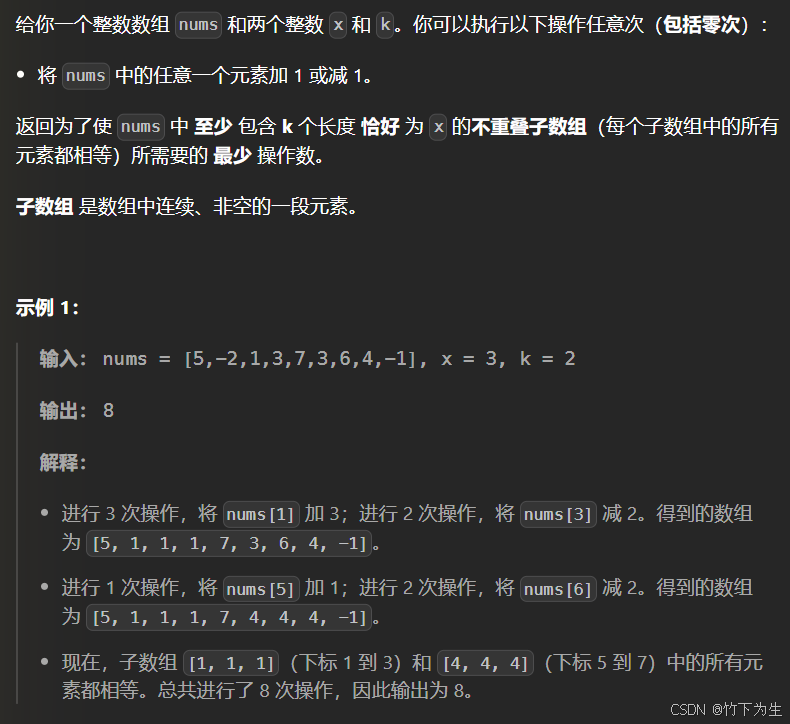 - 状态定义:设 f [ i ] [ j ] f[i][j] f[i][j] 表示将前 i i i 个数划分出 j j j 个长度恰好为 x x x 的子数组(子数组中元素相同)所需的最少操作次数