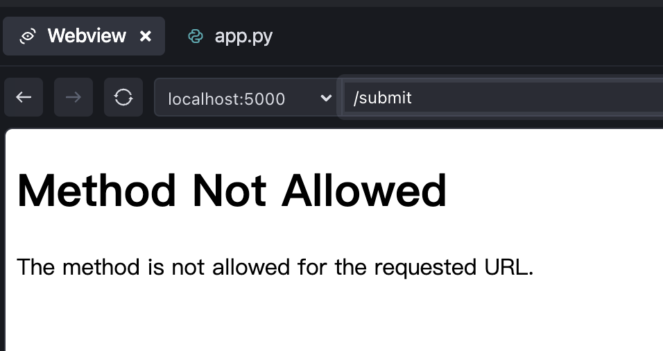 此时设置了是POST请求,如果用Trae自带的浏览器访问,因为实际是GET请求,会报405错误码不允许