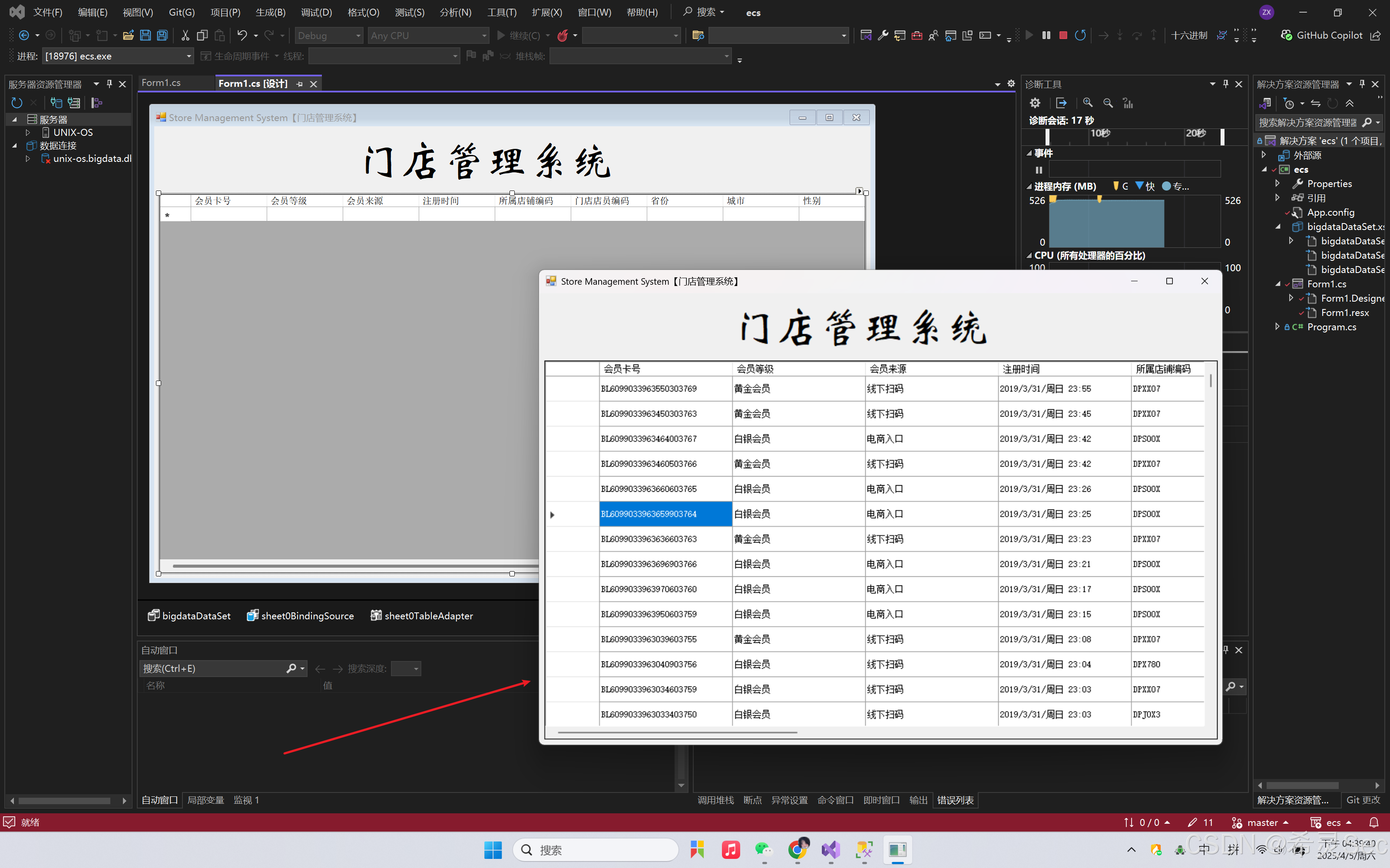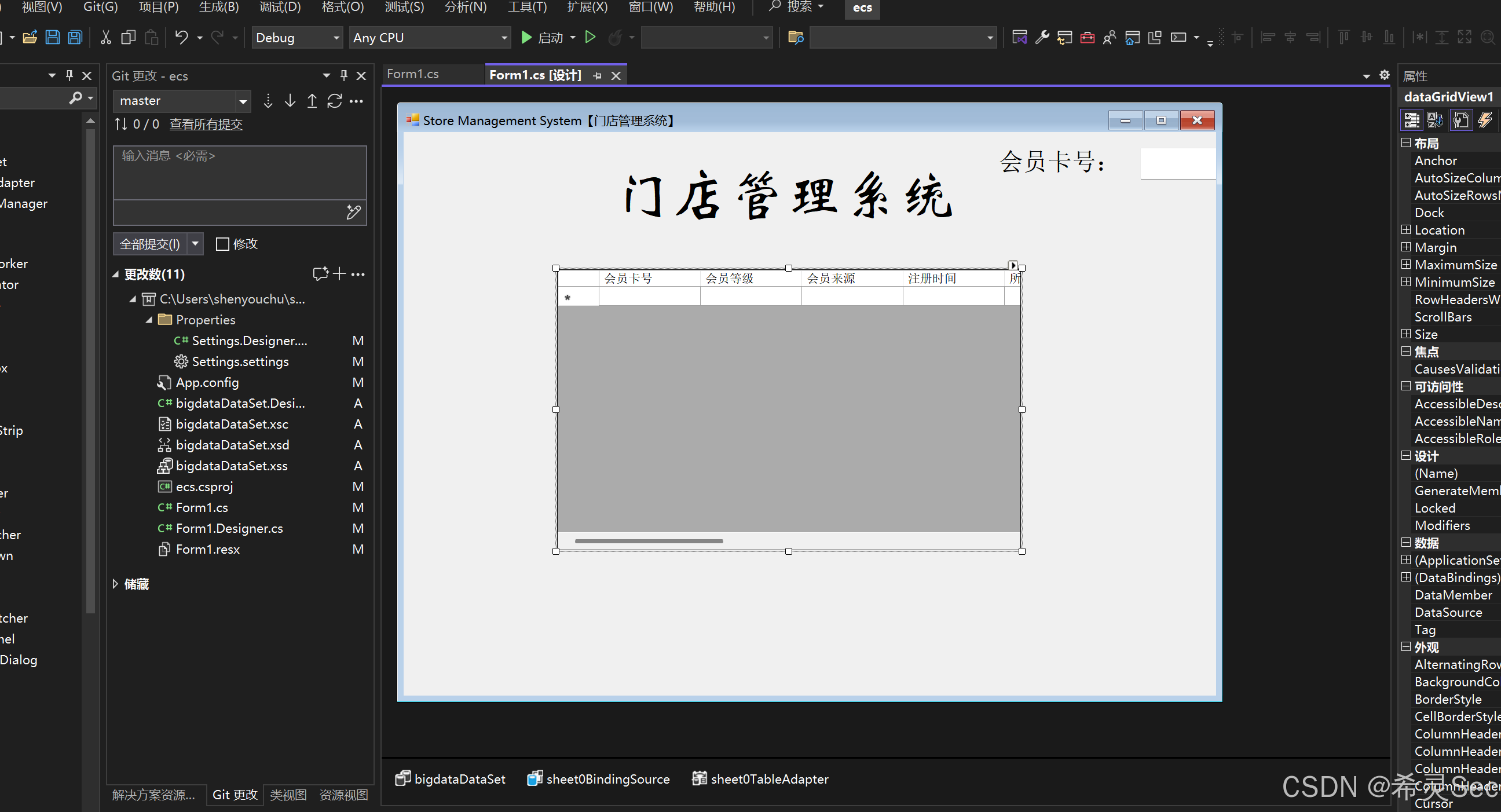 使用的组件有:Label,DataGridView