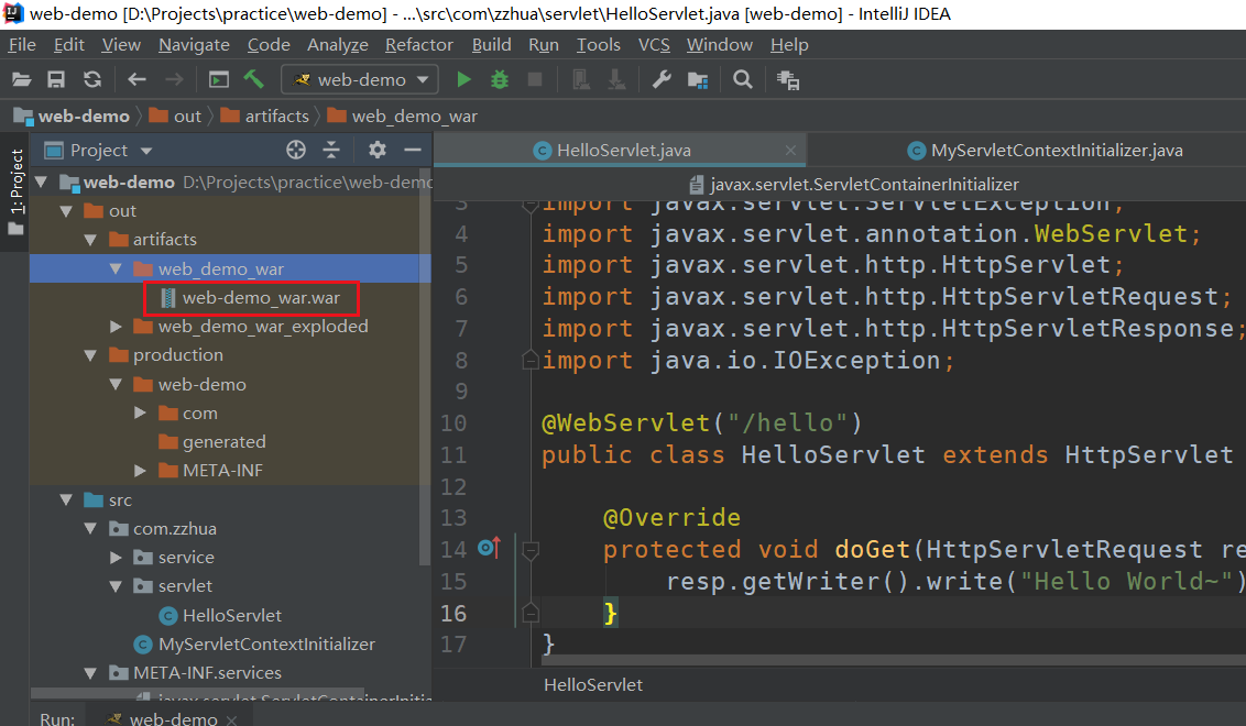 在web容器启动时为提供给第三方组件机会做一些初始化的工作,例如注册servlet或者filters等,servlet规范中通过ServletContainerInitializer实现此功能。每个框架要使用ServletContainerInitializer就必须在对应的jar包的==META-INF/services 目录创建一个名为javax.servlet.ServletContainerInitializer ==的文件,文件内容指定具体的**ServletContainerInitializer实现类**,那么,当web容器启动时就会运行这个初始化器做一些组件内的初始化工作