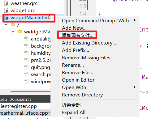 | 添加现有文件,没有资源文件要自己新建一个资源文件 |