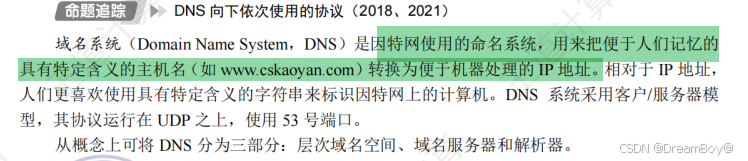 - 工作原理:将域名转换为 IP 地址。当用户在浏览器中输入域名时,本地域名服务器首先查询自身缓存,如果没有找到对应记录,则向根域名服务器发送请求,根域名服务器根据域名的顶级域名告知本地域名服务器下一步该查询的顶级域名服务器,依次类推,直到找到目标域名对应的 IP 地址并返回给用户。