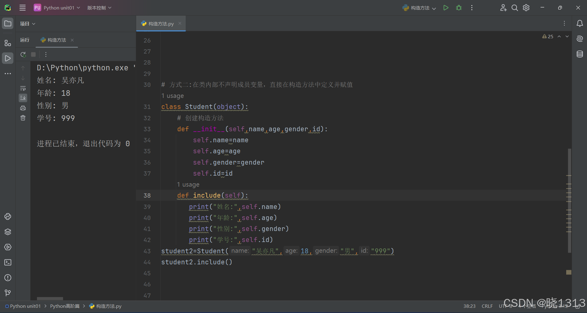 不利于代码的管理,因此Python提供了"构造方法",由这个方法进行类内部赋值,这样减少了代码的重复性并且利于程序维护。