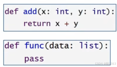- 函数(方法)形参列表和返回值的类型注解