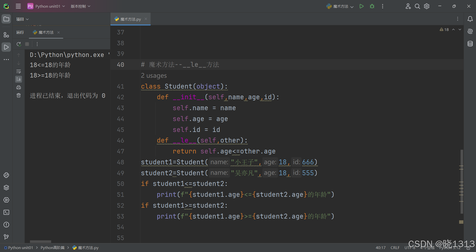 这些内置的类方法,各自有各自特殊的功能,这些内置方法我们称之为:魔术方法