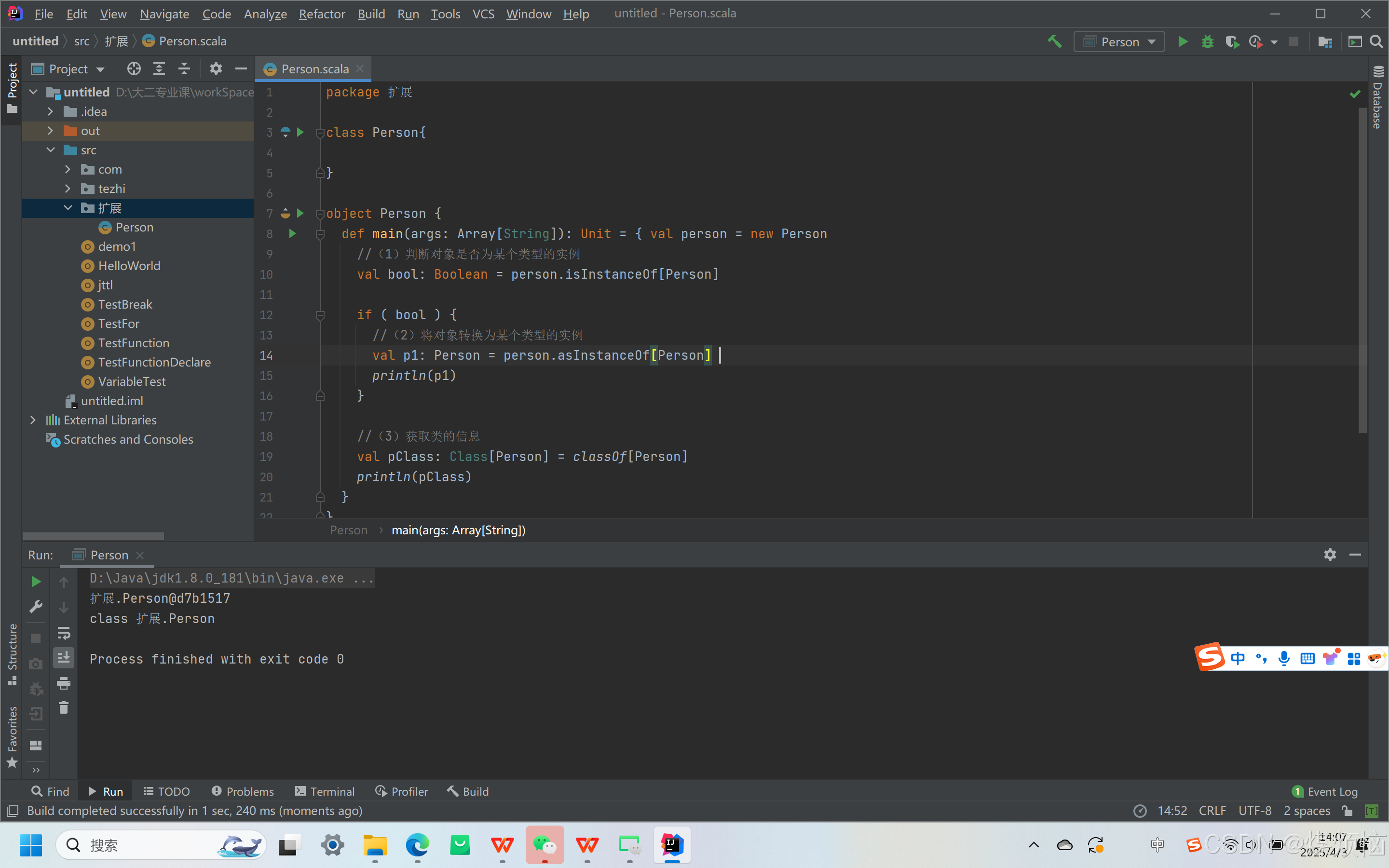 1.obj.isInstanceOf[T]:判断 obj 是不是T 类型