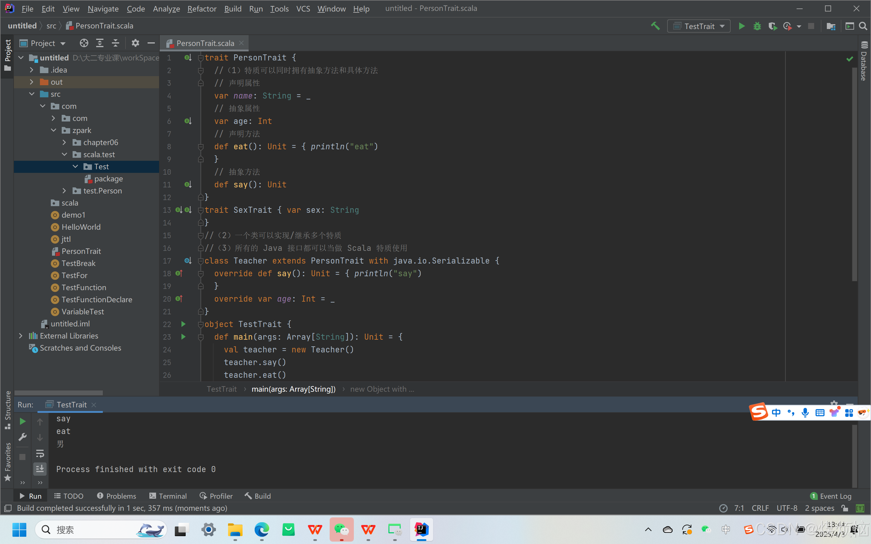 类和特质的关系:使用继承的关系,一个类可以混入多个特质