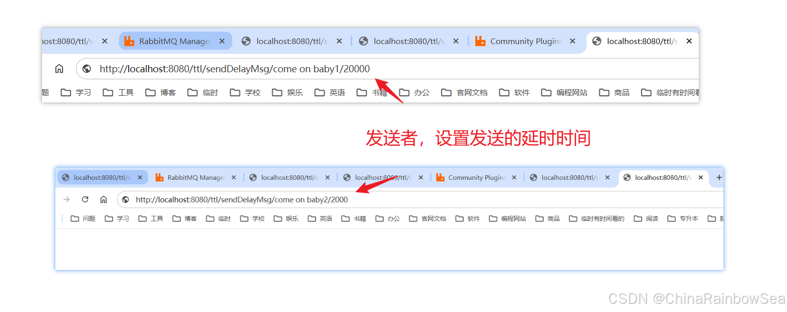 - http://localhost:8080/ttl/sendDelayMsg/come on baby2/2000