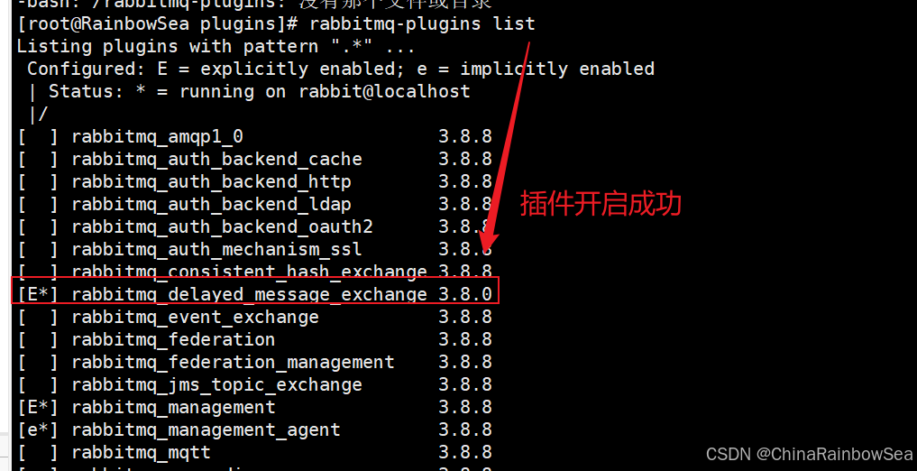 [root@RainbowSea plugins]# rabbitmq-plugins enable rabbitmq_delayed_message_exchange
