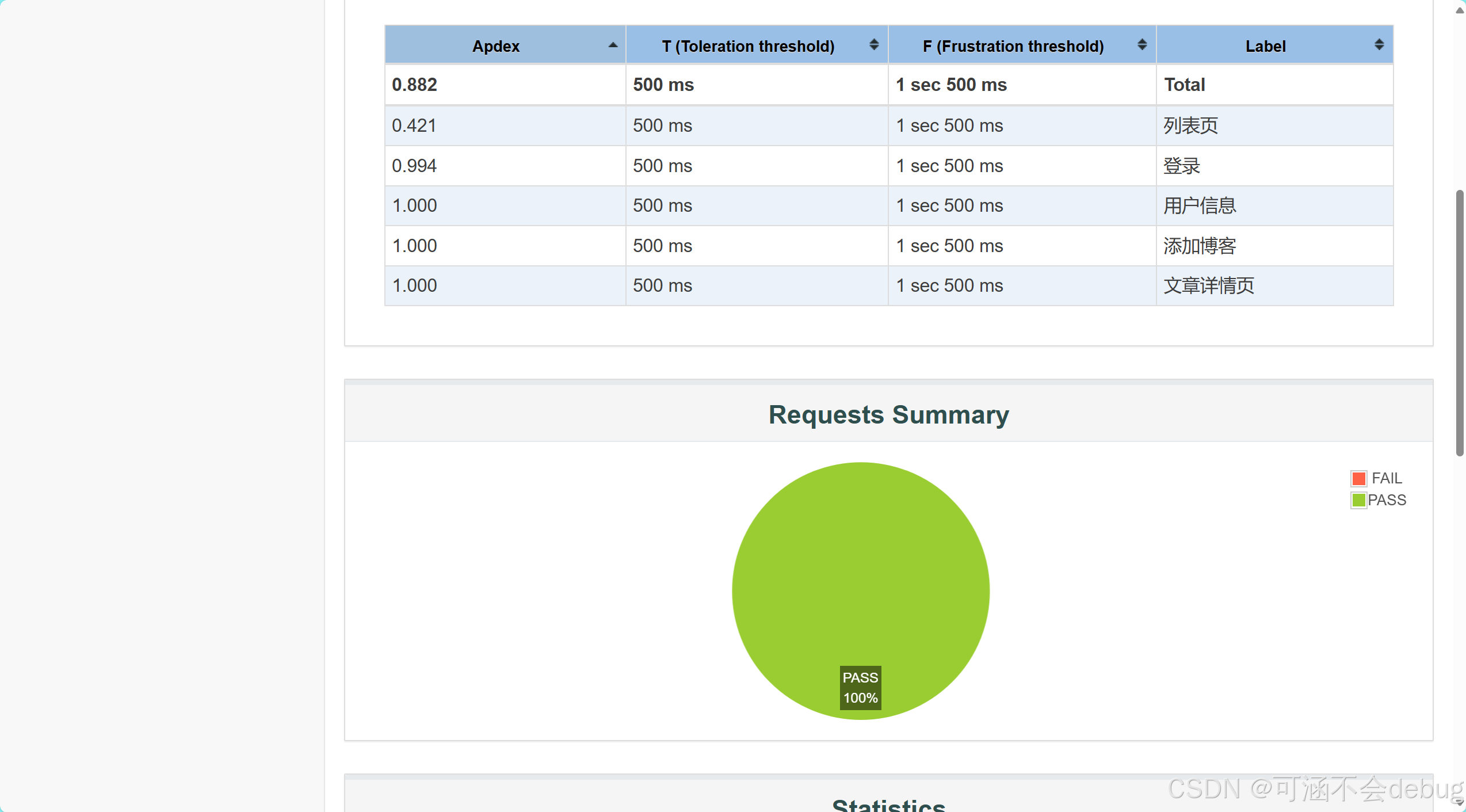 从聚合报告可以看到性能测试过程中整体的数据变化,
