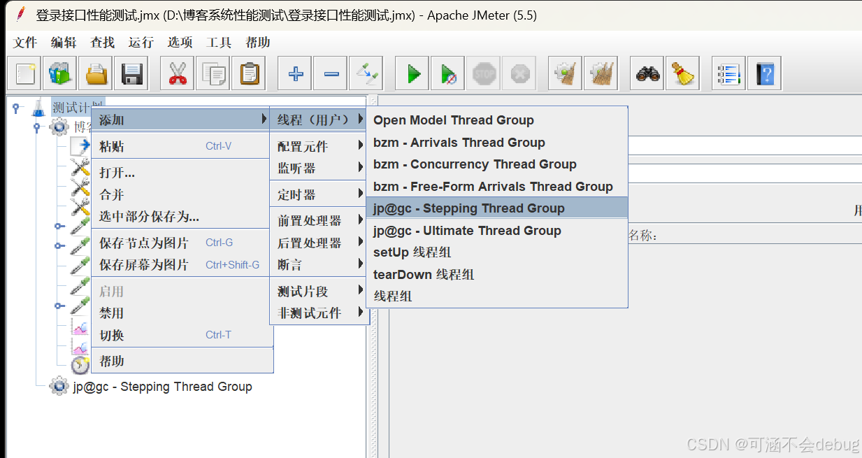 以登陆接口为例,当我们执行登陆接口的性能测试时,手动配置了用户名和密码为固定的username和password,然而实际使用中不可能只有一个用户登陆,为了模拟更真实的登录环境,我们需要提供更多的用户username和password来实现登录操作、